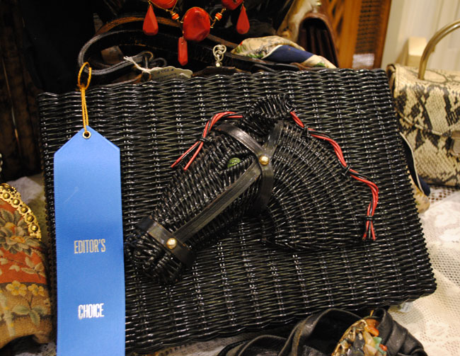 A wicker basket purse with a horse's head (dang, I wish I had bought this myself!)...